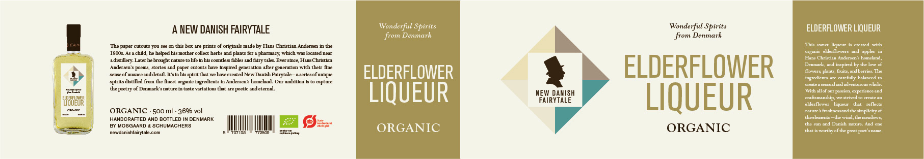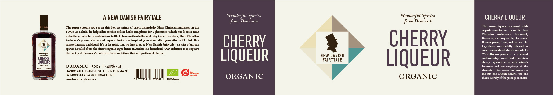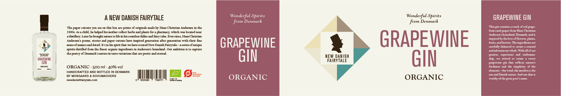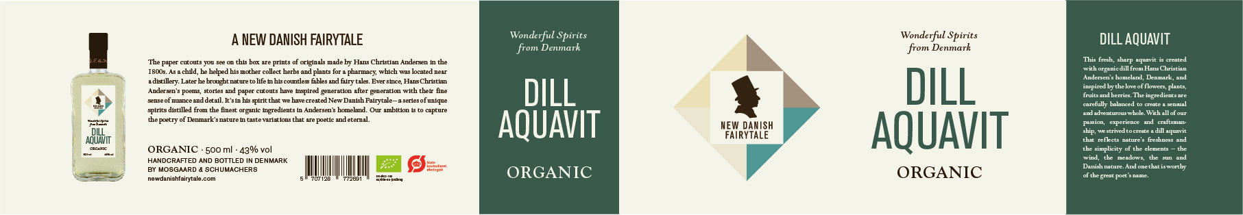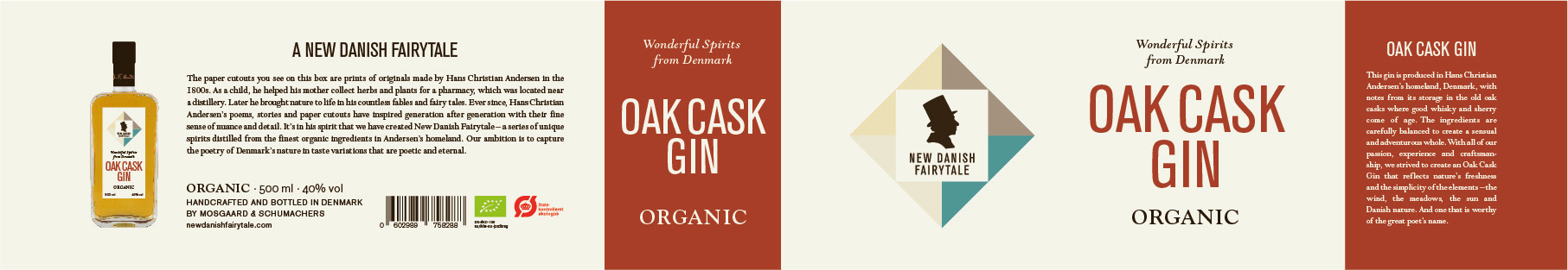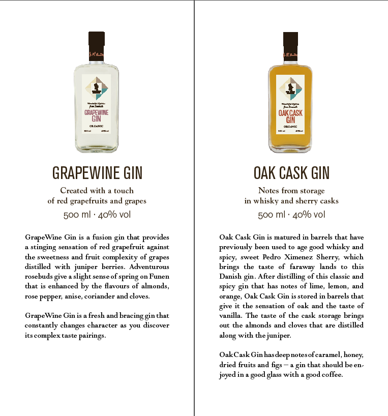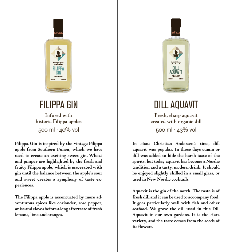 Logo, visuel identet og design af etiketter og emballager til serie af økologiske brændevine og gin.